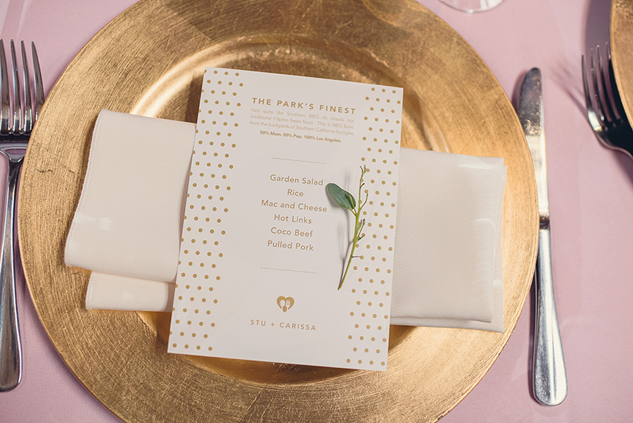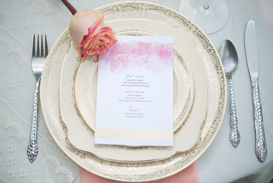 Creating a lovely, impeccable place setting will greet your guests the right way. Adding personalized touches such as take-home favors or personalized menus is always a good idea.